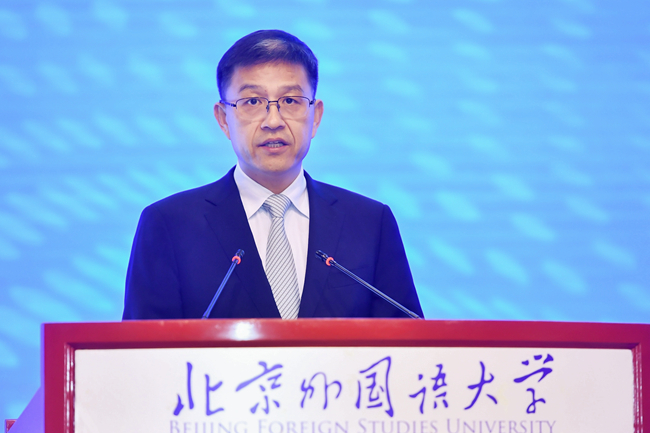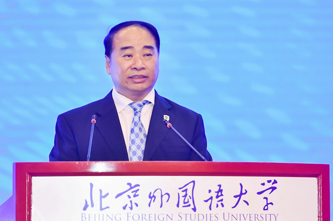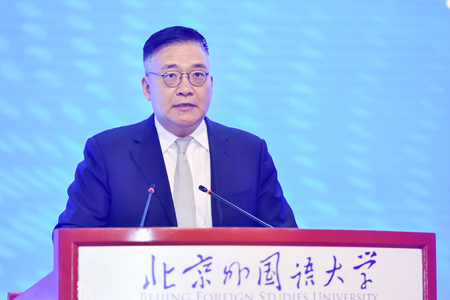 王定华指出,大学是人类社会文明进步的产物,也是人类社会文明进步和科技创新的重要推动力。现代大学与现代文明相互促进、相得益彰,应勇担全球文明发展使命,成为全球文明的积极践行者、推动者。一是要对话全球文明。对话是增进国际理解、促进民心相通的有效渠道。全球文明论坛就是北外打造的不同文明对话平台,旨在深化中外交流、增进各国人民友谊、推动构建人类命运共同体。我们要整合多元力量,努力打造全球文明大团结、大联合的生动场景。二是要研究全球文明。我们对世界文明的研究才刚刚起步。北外将围绕全球语言、全球文化、全球治理三大领域,积极推动建设区域国别学为“大国之学”“时代之学”“经世之学”,为人类命运共同体构建和全球文明实践提供学科支撑。三是要语通全球文明。国际语言能力是我们开展文明对话、促进文明互鉴的基本前提。北外要发挥语言优势,坚持语通中外、道济天下,努力培养更多有家国情怀、有全球视野、有专业本领的复合型人才,为推动中国更好走向世界、世界更好了解中国作出新的更大的贡献。四是要感知全球文明。增进国际理解是一项需要中外双方充分交流互动的民心行动。我们要加强青年学生的国际理解教育,在新时代青年心中打牢相互尊重、相互学习、热爱和平、维护正义、共同进步的思想文化根基。要积极鼓励学生赴世界各国大学和研究机构深造,努力打造“留学北外”品牌,让留学生在这学得好、回去用得上,成为中华文明与世界文明交流互鉴的人文纽带。五是共绘全球文明。全球文明是一张宏大的人类社会美好蓝图。全球文明论坛为传播和发扬中华文化、促进世界各国文化交流,搭建更加广阔的对话平台。我们期待将论坛一届一届办下去,办出成效、办成品牌,把富有友好性、建设性的论坛成果传播好、运用好,为推动世界文明交流互鉴、构建人类命运共同体,汇聚中国智慧、国际力量。
