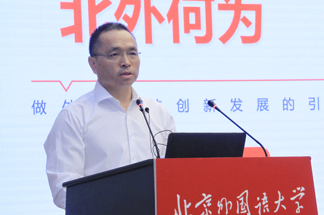 杨丹作了题为“强国建设、北外何为——做外语院校创新发展的引领者”的专题报告。