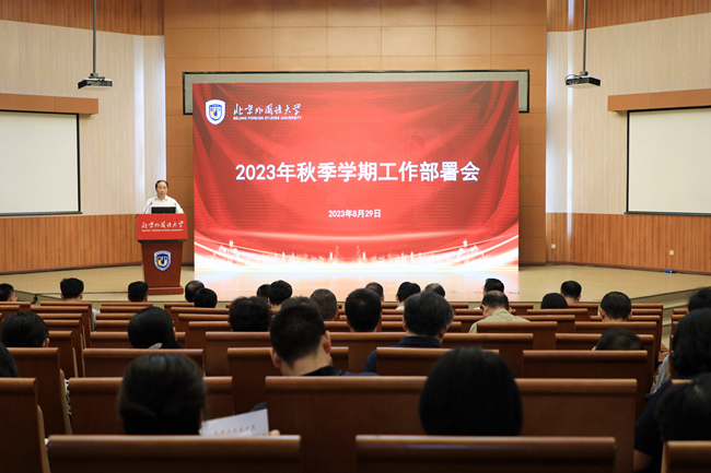 2023年8月29日,beat365在线唯一官网2023年秋季学期工作部署会在阿语楼国际会议厅举行。