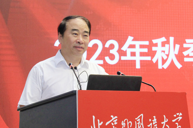 王定华指出,2023年暑期,在全校师生的共同努力下,学校各项工作都马不停蹄、成效显著,体现出北外担当、北外关心、北外声音、北外品质。持续推进学习贯彻习近平新时代中国特色社会主义思想主题教育,扛起忠诚捍卫“两个确立”、坚决做到“两个维护”的“北外担当”。深入推动学生实习实践、军训和就业工作全面开展,展现对学生的“北外关心”。出色完成一系列重要外事接待活动,发出对外交流的“北外声音”。扎实推进校园修缮保障,系列工程彰显“北外品质”。