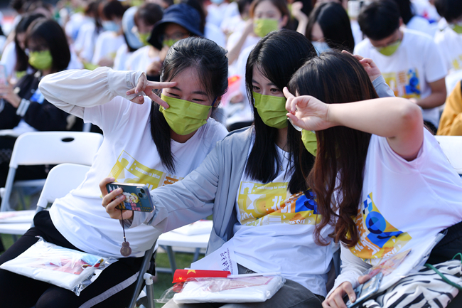 此次开学典礼通过人民网、央视网、B站和校园网等视频平台进行实况直播,部分因疫情未能返校的学生、留学生以及学生家长们通过网络直播观看典礼,共同见证人生新阶段开启的重要时刻,通过直播屏幕与现场师生互动,分享欣喜与激动。